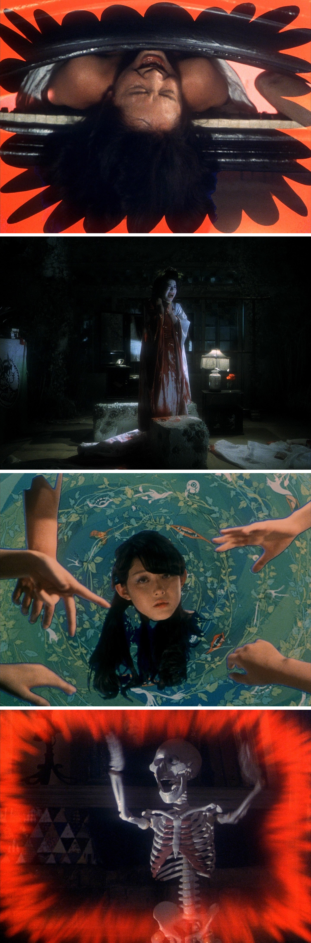 Obayashi had, prior to this film, mostly worked in commercials and independent films, so the majority of the cast in House were not established actors. It was a mix of people he had worked with before, and some friends and family. His daughter even has a small role as the little girl in a shoemaker’s shop, and the shoemaker himself was played by the production designer. While being filmed in one of Toho’s largest sets, Obayashi made sure to have a playful attitude which caused everyone to have fun. The Toho crew felt the film was utter nonsense, but let’s be honest…it kind of is. But it’s the good kind of nonsense! The overall mix of complete nonsense, childish and upbeat tone with the horror elements reminiscent of the nightmare logic of a 5-year old, is what makes this movie such a unique experience, accompanied with a fitting score which was performed by a rock band called Godiego.