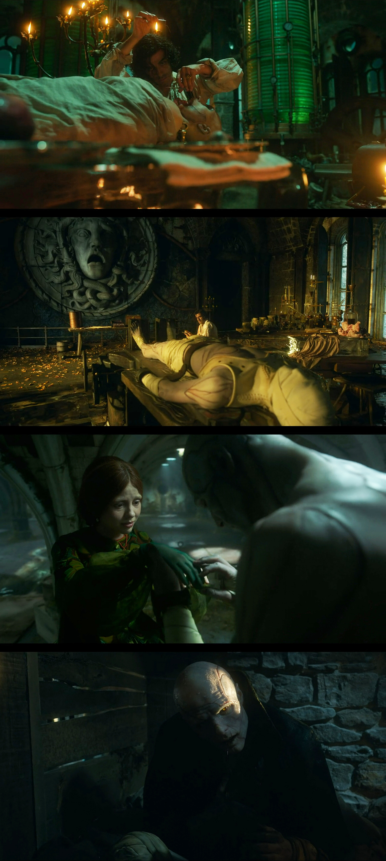Aside from the two main actors of the movie, it was also fun to see the beautiful Mia Goth in two supporting roles here, first as Victor’s mother (which we see very briefly), and then as Elizabeth who is the fiancée of Victor’s brother, but also Victor’s obvious love interest. Like in all classical “beauty & the beast“ stories we do of course get a connection between the creature and Elizabeth, as she’s very empathetic as opposed to Victor’s extreme egotistical personality. If there’s one thing I feel this movie robbed us of though, it’s seeing Mia Goth as The Bride. I honestly really thought that moment was coming, too, but it just fizzled out into nothing. Oh well.
