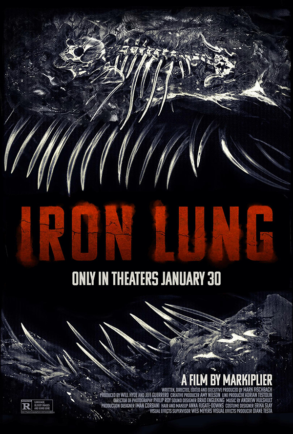 Iron Lung is a sci-fi horror film written and directed, and also self-funded, by Mark Fischbach aka Markiplier in his feature directorial debut. It also stars Fischbach himself in the leading role, and it is based on a horror video game from 2022 by the same name which was made by David Szymanski. The development for the film began in the start of 2023, and it was shot at Troublemaker Studios. During the production, Fischbach stated that the film would contain the most fake blood of any horror film thus far, even surpassing 2013 Evil Dead‘s 50,000 US gallons (190,000 L). Iron Lung has 80,000 gallons (300,000 L). Yikes! Fischbach even had to go to hospital during the filming as he’d gotten too much of that fake blood in his eyes (ouch).