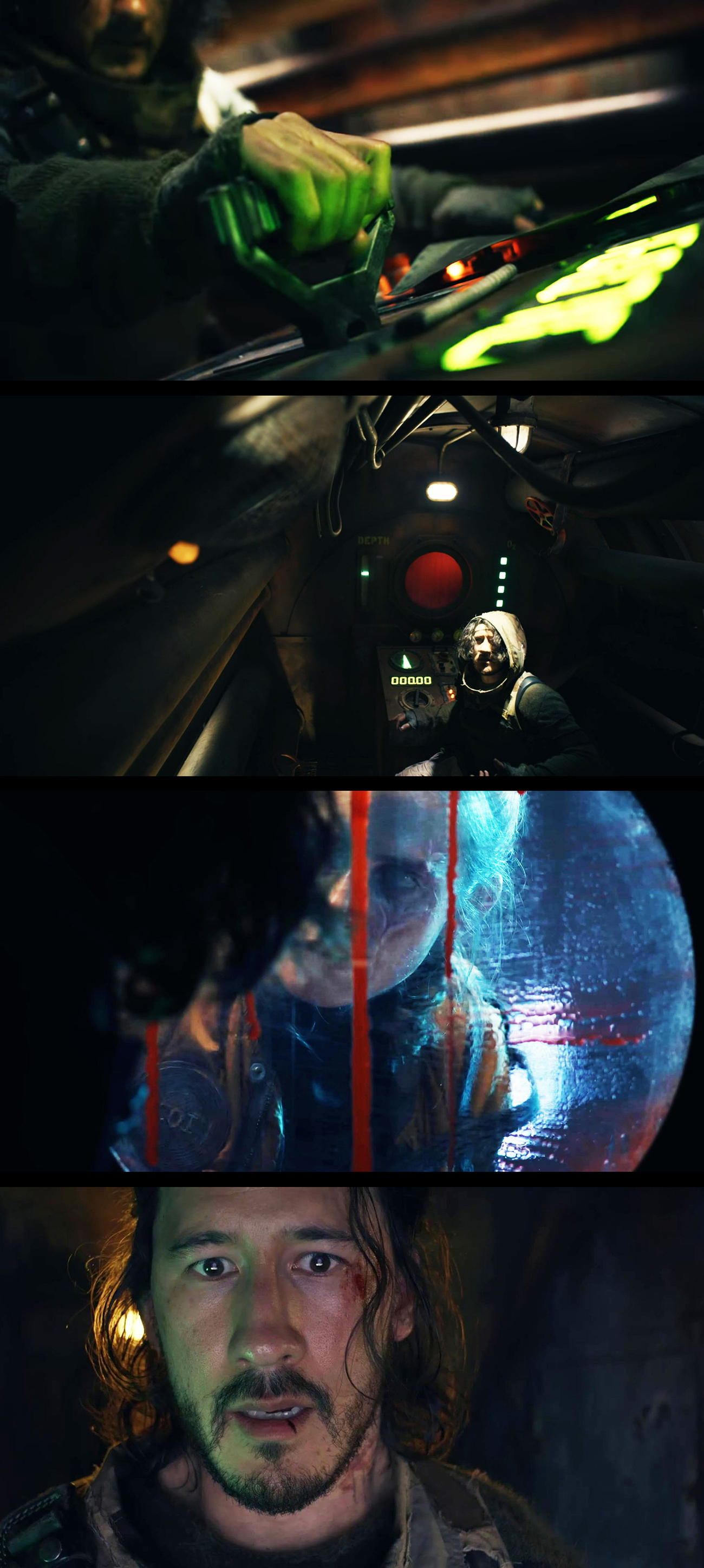 Iron Lung is a passion project through and through, and Fischbach is indeed a very decent actor. Which was a must in a chamber drama movie like this, where everything relies mostly on the shoulders of one actor. The set design looks great and exactly like the game as I already mentioned, and the effects used in this film are overall really solid. There is only one issue, and that is the movie’s runtime. It’s just too dang long. I’m not saying that a runtime of 2 hours wouldn’t necessarily work for a movie like this, but it does unfortunately become too repetitive at times and it was hard not to feel that it could have done much better with a shorter runtime. Despite some issues with the pacing and overly long runtime, I thought it managed to keep a creepy atmosphere and dense, claustrophobic vibe throughout. And those 80,000 gallons of blood? Well, they’ve been put to good use in a totally bonkers finale which really amps up everything to a hundred and eleven!