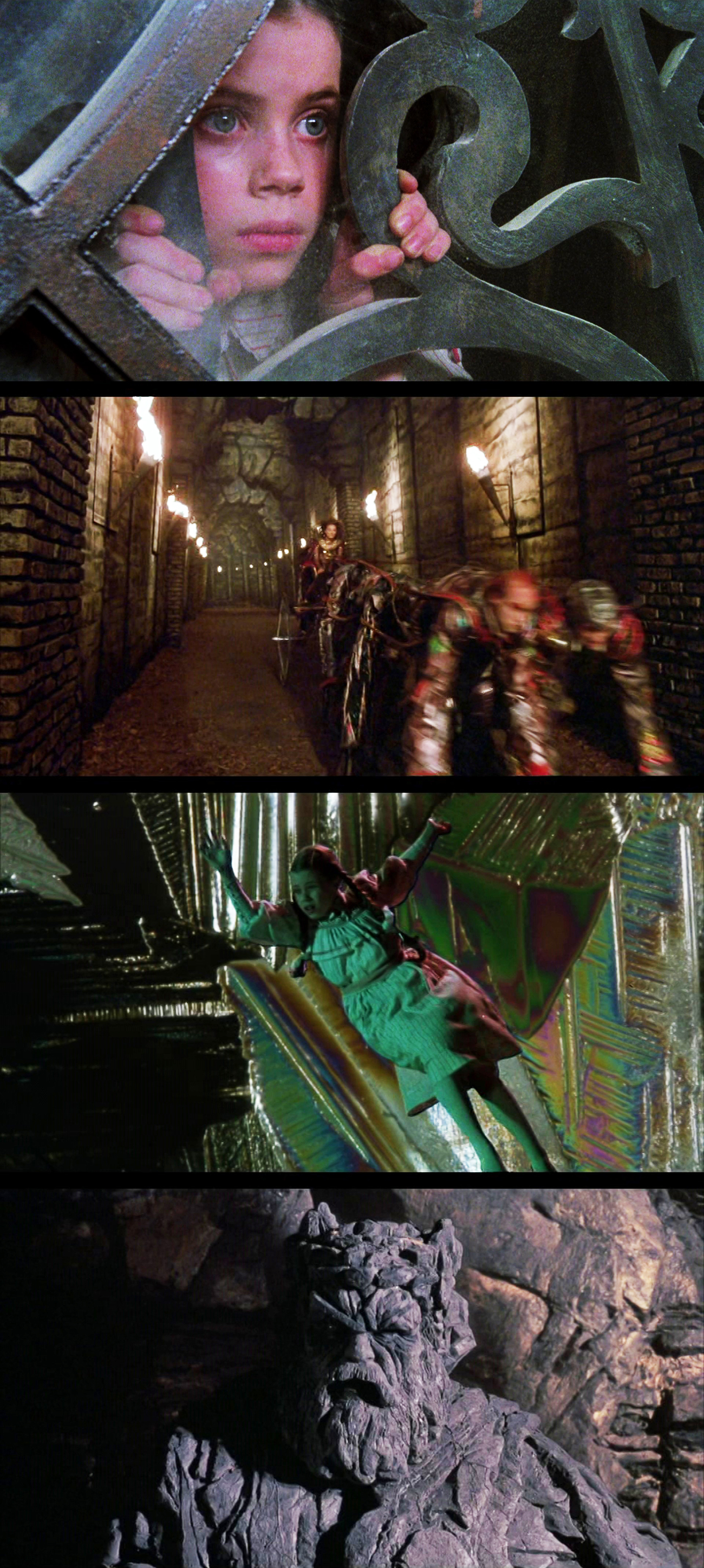 The critics weren’t impressed either by how dark and bleak it was, especially the two clowns Siskel and Ebert, who saw Tik-Tok as a R2-D2 ripoff. But yeah, going into this film completely blind and expecting the musical all over again, well… life’s not always fair. There’s no room for humor here and the somber/melancholic tone is pretty much already set in stone (no pun intended) from the first frame, where we see a depressed Dorothy lying in bed and staring at the starry night as she’s thinking about her friends over the faded rainbow. I also have a very weak spot for the score by David Shire. The closest to humor is through some dry, sarcastic lines from the talking chicken, and from a more adult perspective, The Wheelers, because, well, just look at them. All that said: the doom n’ gloom, the dead seriousness, and the constant underlying menacing tension, that get turned up to 666 by the intimidating echoing voice of the Nome King alone, is what makes this film so damn memorable — and, in the end, to a unique, delightful gateway horror that has aged like a fine green vine (not from Nilbog). Good times.