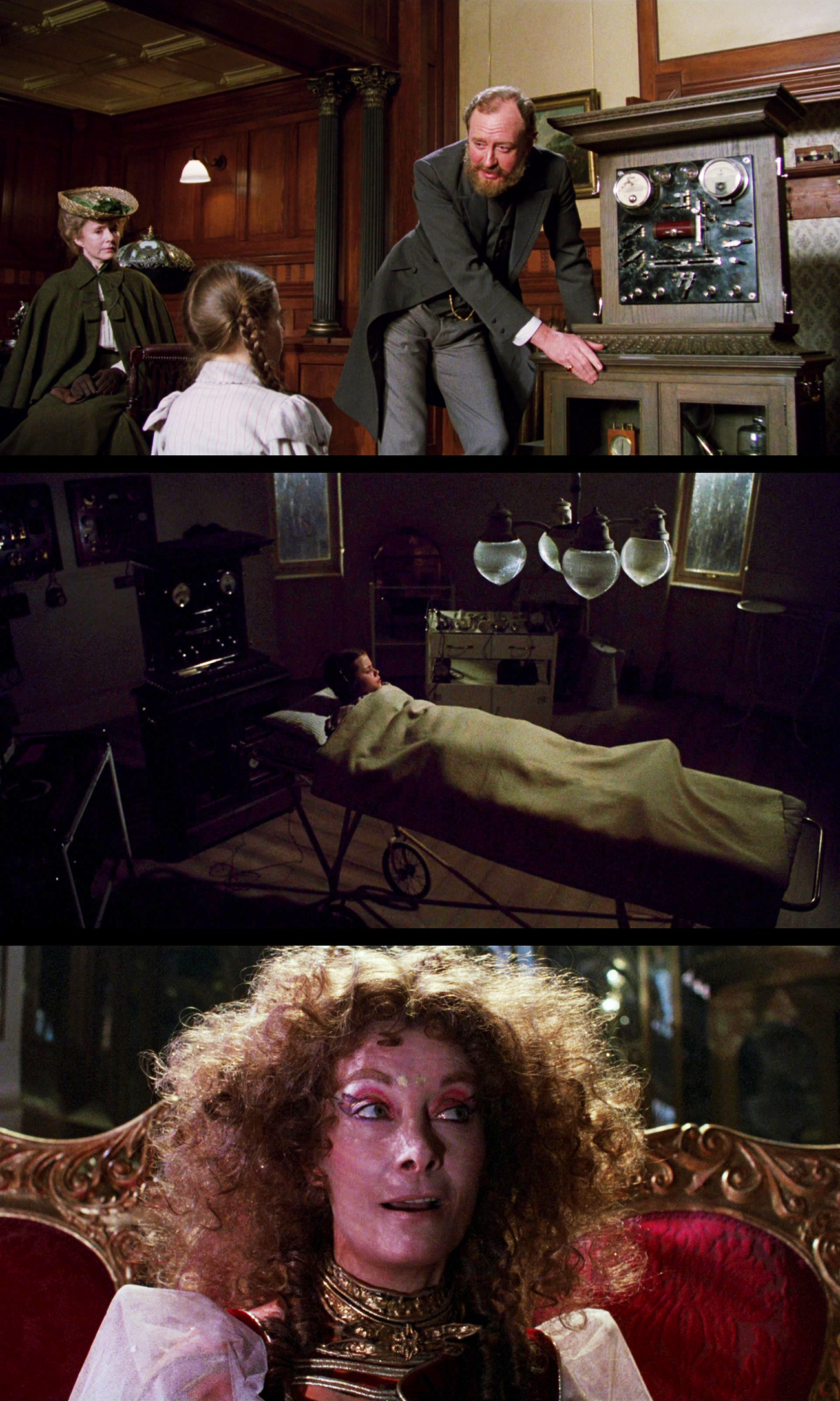 Her Aunt and Uncle also have some bigger plans for her which they have used all their savings on, and that is to send her to a psychiatric clinic to meet Dr. Worley and his witchy assistant Wilson. Dr. Worley proudly shows off his little monstrosity of an electroshock device, because, as he enthusiastically says: It’s the 20th Century! The age of electricity! Uh-oh… yeah, fuck this boolshit, we know where this is going. It’s time for Aunt Em to grab poor Dorothy, take a U-turn and rather encourage her niece to use her crazy imagination to write a series of fantasy novels, or something.
