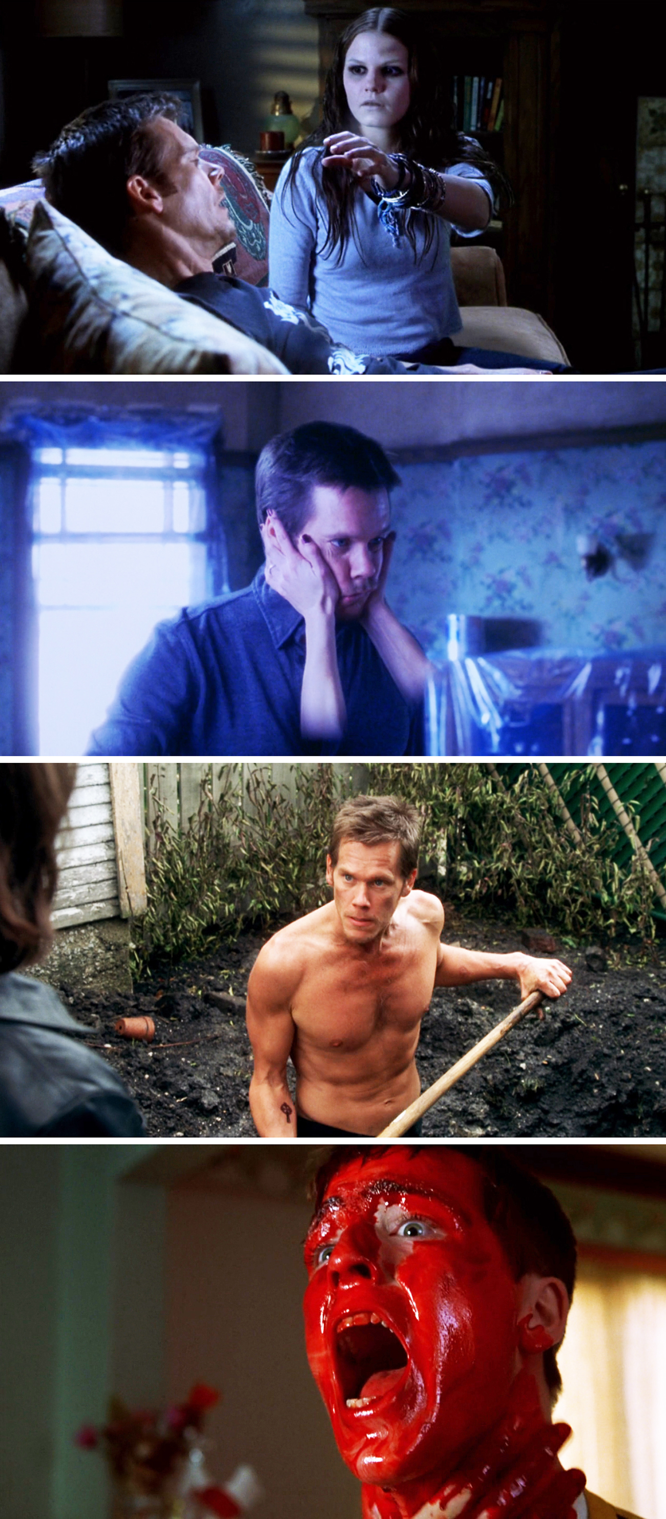 Kevin Bacon is fine in the role as the skeptic man turned believer, and he’s often so irrational in his behavior that you almost start wondering what exactly is up with this guy. Yeah, we all know that seeing dead people can take its toll, but c’mon man, even your five-year old son is able to cope with this in better ways than you do! With that being said, a lot of people in the neighborhood seem to cope with things in the wrong ways, which of course goes a long way in describing how certain working-class neighborhoods who are striving to appear like a “decent upper-class” place, will often hide their issues rather than deal with them.