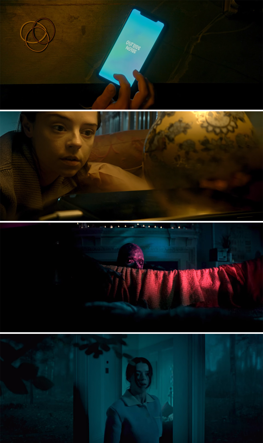 An overwhelmed woman listens to a sleep ambience app to unwind before bed, but when the sounds eerily begin to blend with reality, she suspects it has conjured something frightening into her room.